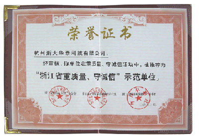 重質量守誠信榮譽證書